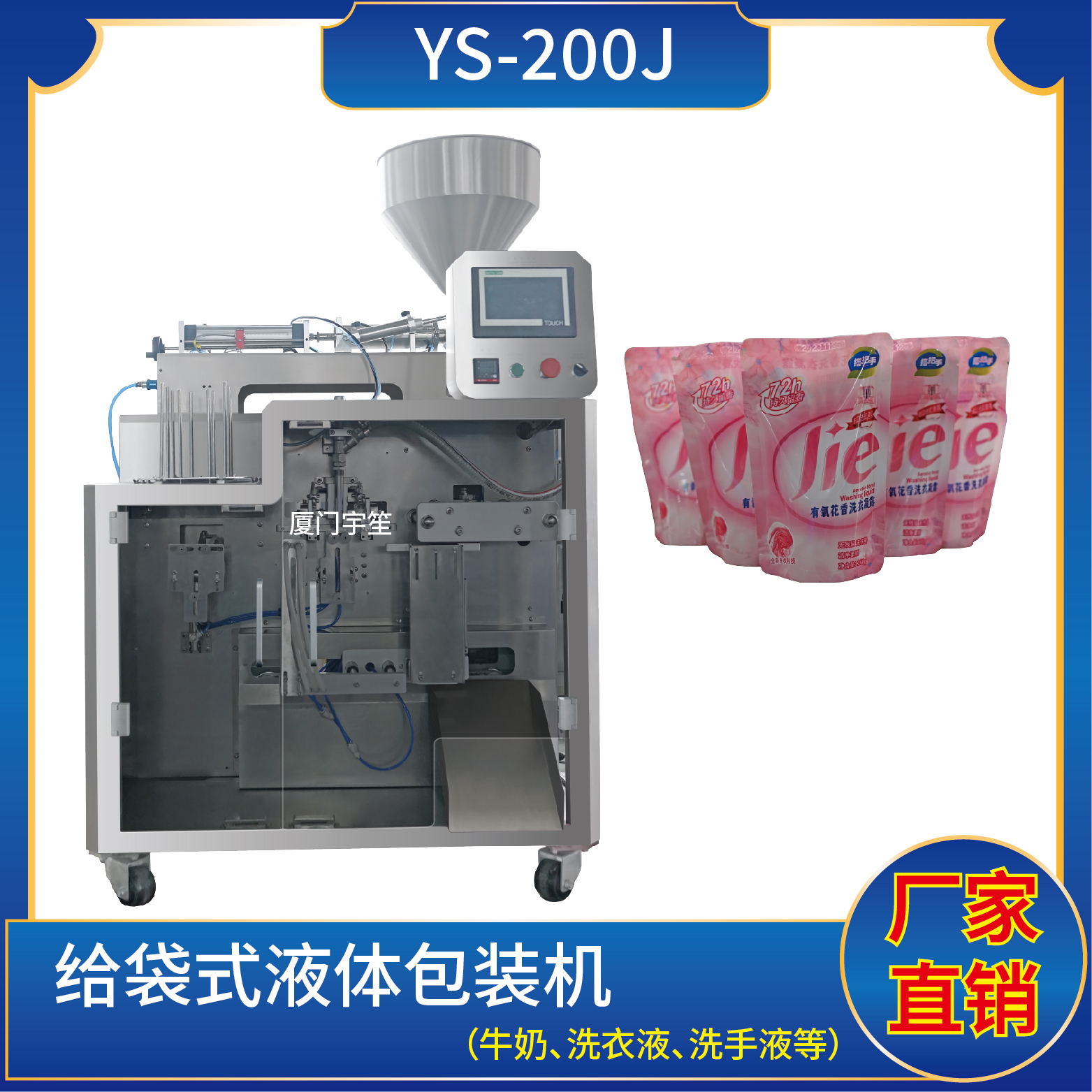 適用于食品、醫(yī)藥、化工、化妝品行業(yè)中液體、醬料等物品的計(jì)量包裝,如:洗衣液、消毒液、果汁、酸奶等。