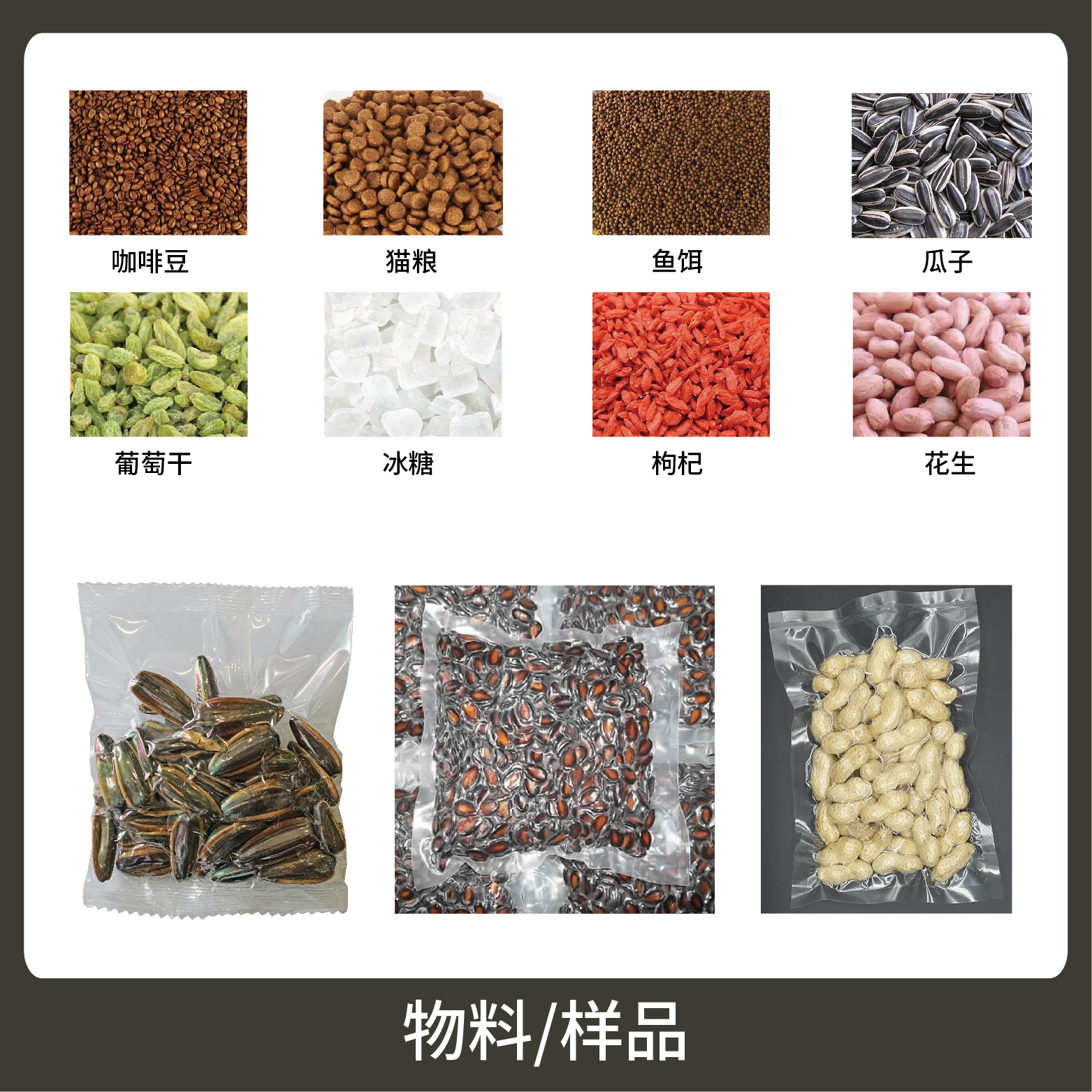Suitable for the vacuum metering and packaging of granular items like dried fruits, roasted snacks, and dried vegetables in the food industry, which prevents food from mold and spoilage, preserves the color, aroma and taste of food, and extends the shelf life.